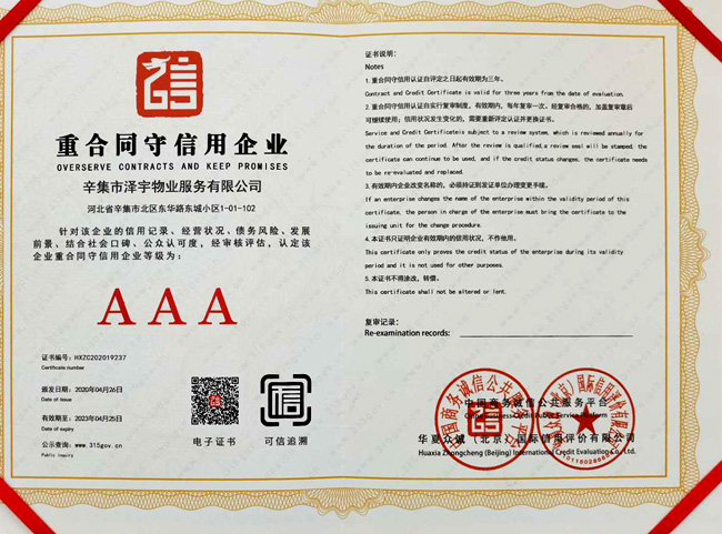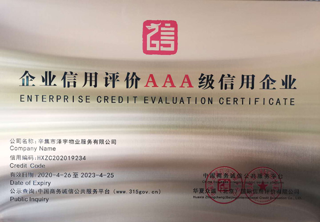 | 企業(yè)信用評(píng)價(jià)AAA級(jí)信用企業(yè) |